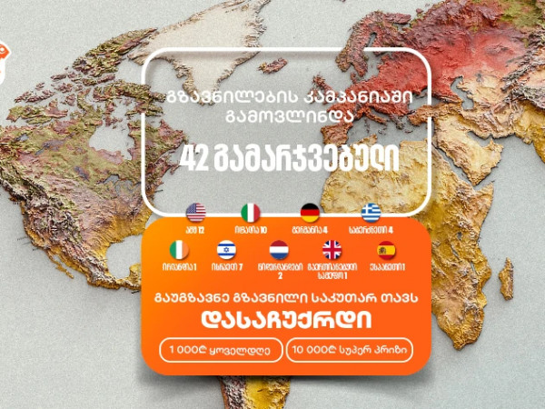 საქართველოს ბანკის „საკუთარ თავთან გზავნილის“ კამპანიის ფარგლებში, შესაძლებლობა გაქვთ მობილბანკში გზავნილის განაღდებით ყოველდღიურად 1,000₾, ხოლო კამპანიის ბოლოს სუპერპრიზი - 10,000₾ მოიგოთ. აქცია 20 დეკემბრის ჩათვლით გრძელდება.