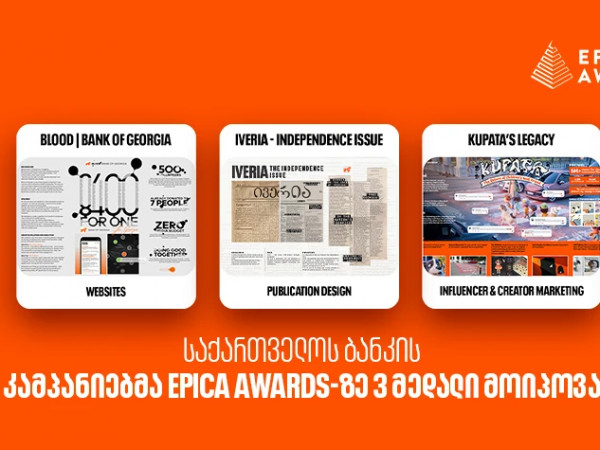 საქართველოს ბანკის კრეატიულმა კამპანიებმა საერთაშორისო კრეატიული ფესტივალის Epica Awards-ის სამ კატეგორიაში გაიმარჯვა და 1 ვერცხლის, 2 ბრინჯაოს მედალი მოიპოვა.