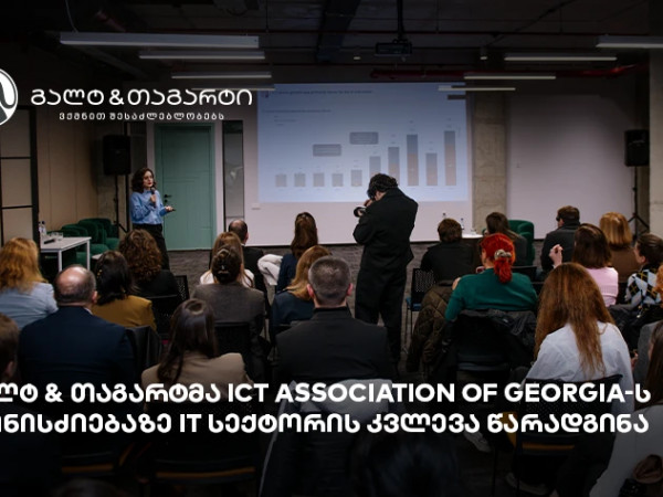 გალტ & თაგარტმა თბილისში ICT Association of Georgia-ს მიერ გამართულ კვარტლურშეხვედრაში მონაწილეობა მიიღო, სადაც ასოციაციის წევრებთან, პარტნიორებთან და საჯარო სექტორის წარმომადგენლებთან ერთად, IT ეკოსისტემაში მიმდინარე ინიციატივები და სამომავლო გეგმები განიხილეს. შეხვედრაზე გალტ & თაგარტის კვლევების დეპარტამენტის უფროსმა ანალიტიკოსმა, მარიამ მდივანმა IT სექტორის კვლევა წარადგინა.