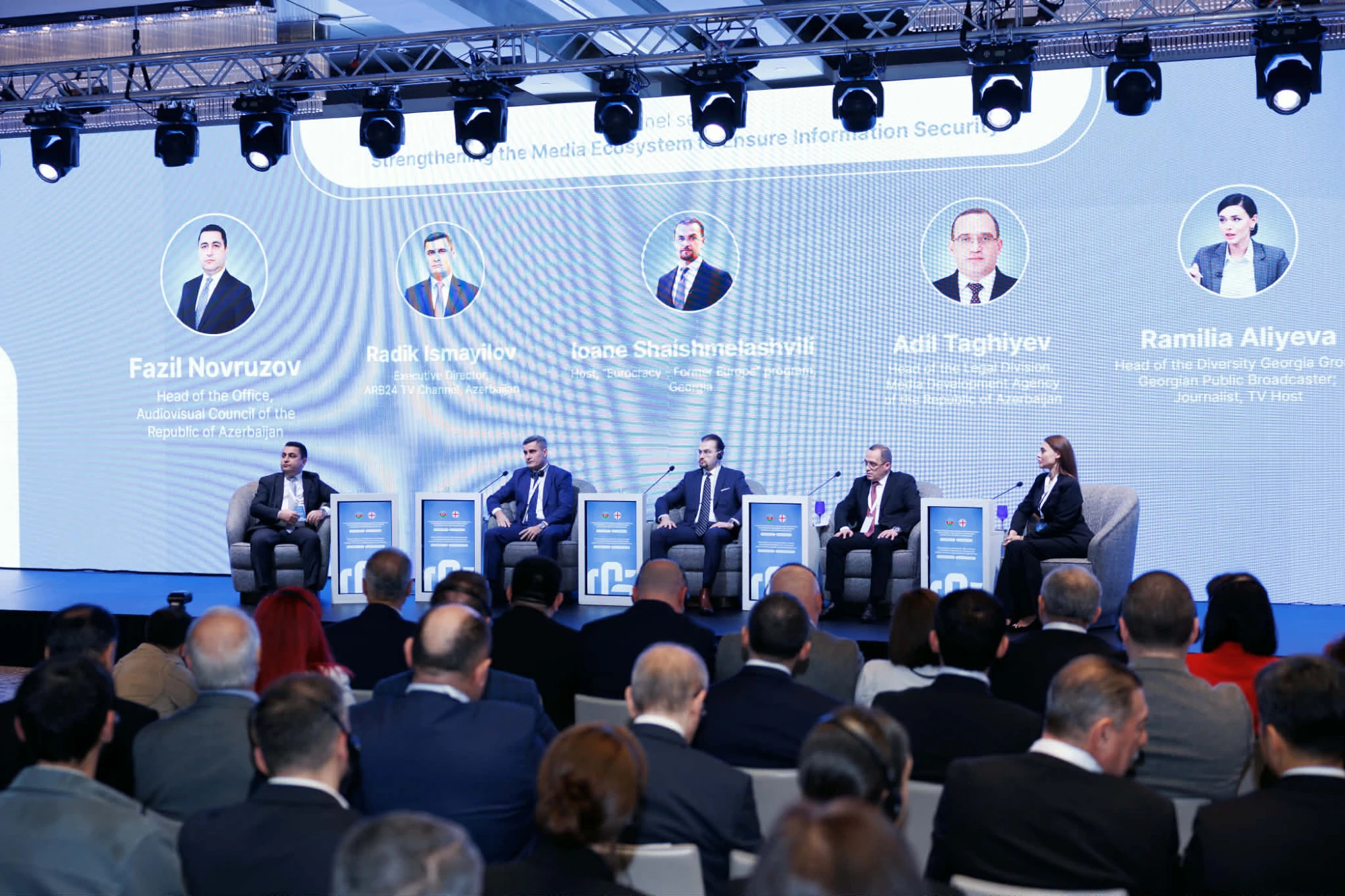 ფორუმის ფარგლებში პირველი პანელური სესია დაეთმო თემას „მედიაეკოსისტემის გაძლიერება ინფორმაციული უსაფრთხოების უზრუნველსაყოფად“. პანელში, რომელსაც აუდიოვიზუალური საბჭოს აპარატის უფროსი, ფაზილ ნოვრუზოვი უძღვებოდა, მონაწილეობდნენ ტელეარხ ARB 24-ის აღმასრულებელი დირექტორი რადიკ ისმაილოვი, ქართული გადაცემის Eurocracy – Former Europe წამყვანი იოანე შაიშმელაშვილი, მედიის განვითარების სააგენტოს იურიდიული დეპარტამენტის უფროსი ადილ ტაგიევი და საქართველოს საზოგადოებრივი მაუწყებლის პროექტის „მრავალფეროვანი საქართველოს“ ხელმძღვანელი, ჟურნალისტი და ტელეწამყვანი რამილია ალიევა.