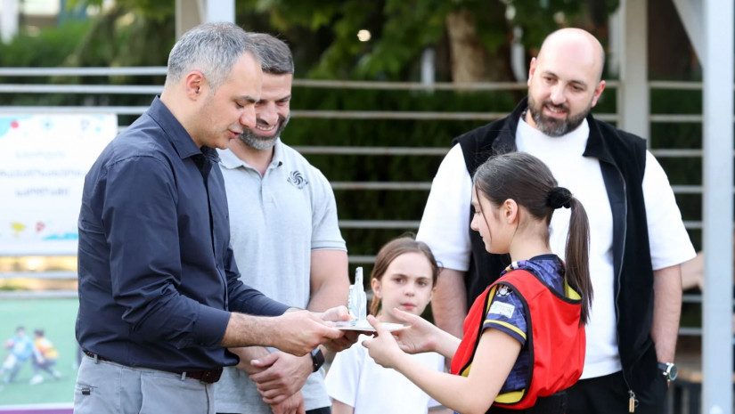 საქართველოს განათლების, მეცნიერებისა და ახალგაზრდობის მინისტრი ალექსანდრე წულაძე, საქართველოს რაგბის კავშირის პრეზიდენტ დავით კაჭარავასთან ერთად, სკოლის მოსწავლეებისთვის გამართულ სპორტულ