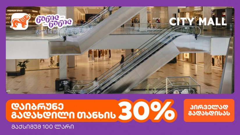 შეთავაზების ფარგლებში, ის მომხმარებლები, რომლებიც პირველად ისარგებლებენ საქართველოს ბანკის ნაწილ-ნაწილ გადახდით, სითი მოლში შოპინგისას 30%-იან ქეშბექს მიიღებენ (მაქსიმუმ 100 ₾).
