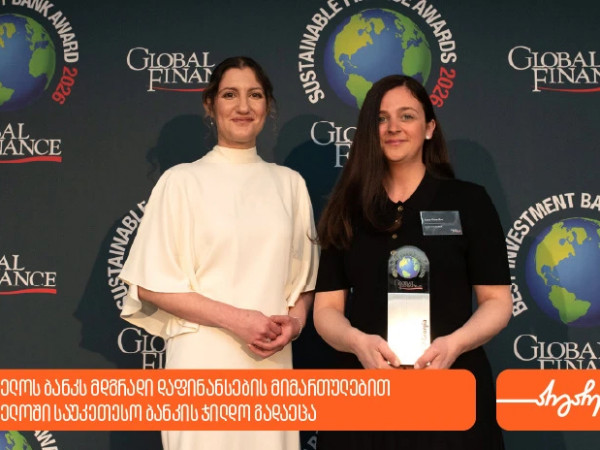საერთაშორისო გამოცემა Global Finance-ის მიერ ლონდონში გამართულ დაჯილდოების ცერემონიაზე საქართველოს ბანკს მდგრადი დაფინანსების მიმართულებით საქართველოში 2026 წლის საუკეთესო ბანკის ჯილდო გადაეცა.